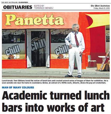 | This tribute to Perth artist and literature lecturer Tom Gibbons was published in The West Australian.